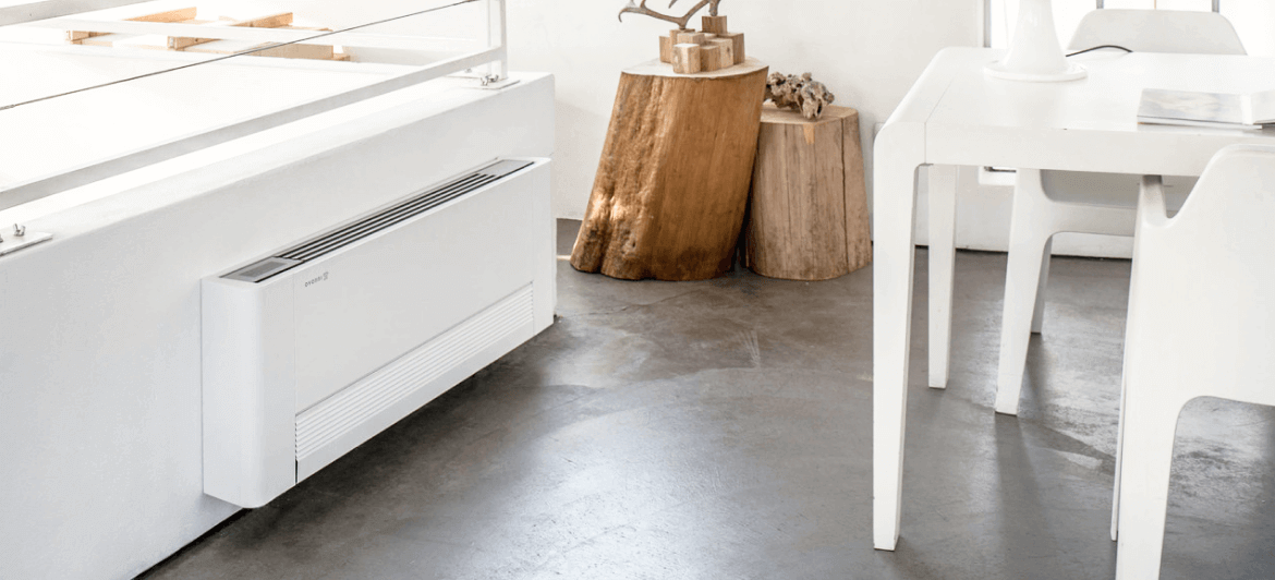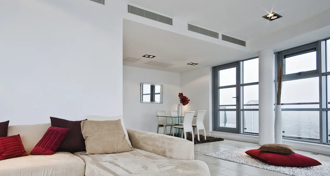 Канальные устройства установлены так, что их практически не видно. Они скрыты за потолком и рециркулируют воздух через каналы и решётки.